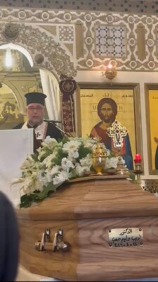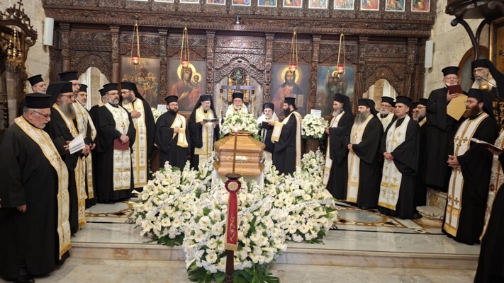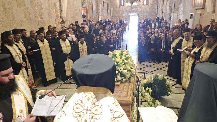 ترأس الصلاة لراحة نفسه، في كنيسة دير سيدة البلمند البطريركي، مطران طرابلس والكورة وتوابعها المتروبوليت افرام كرياكوس، ممثلًا صاحب الغبطة البطريرك يوحنا العاشر اليازجي، وبمشاركة عدد من الأساقفة والكهنة، وبحضور الأسرة البلمندية وفعاليات سياسية ورسمية.